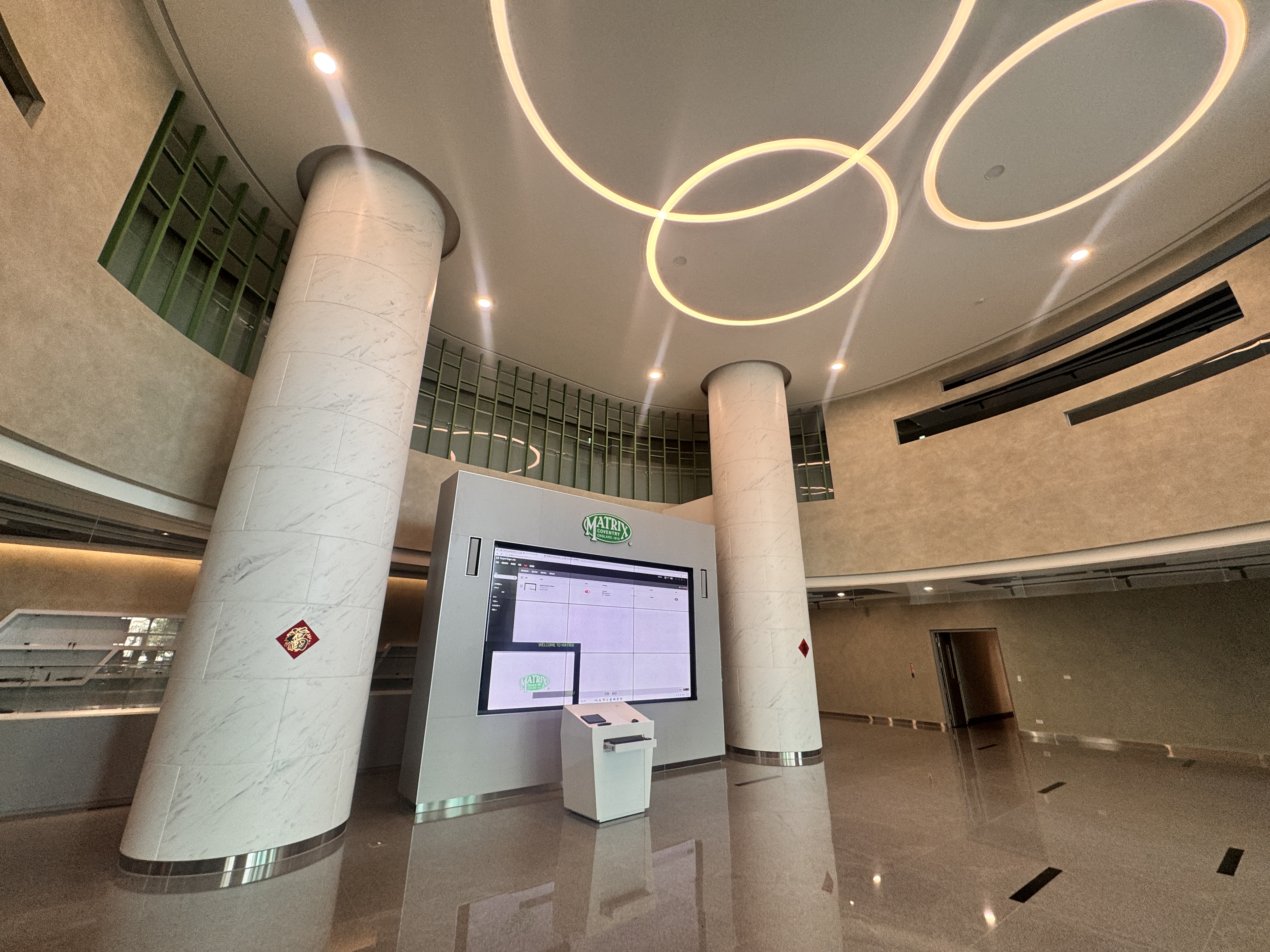 搭配後端媒體播放器與內容管理系統,可彈性播放影片、圖片、動態素材,並支援日後企業活動、品牌宣傳與重要公告運用。