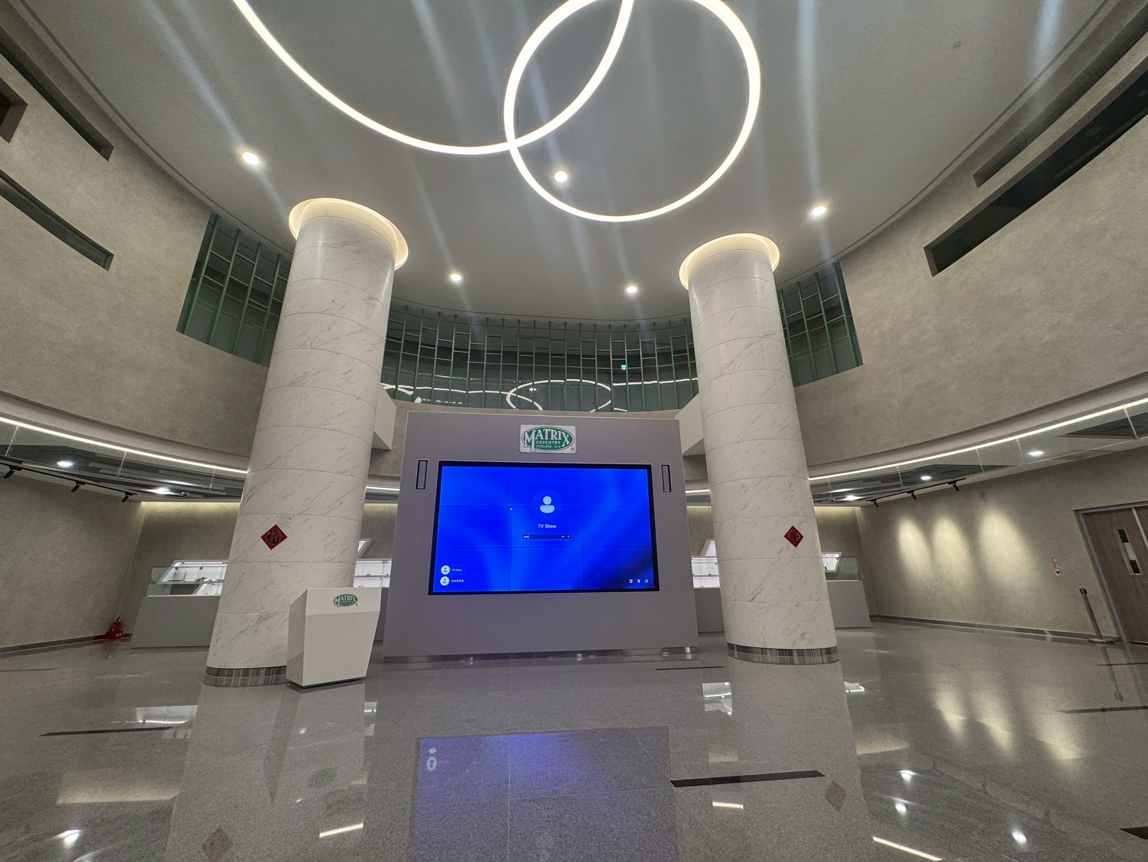 採用 3×3 拼接架構,呈現超大畫面顯示效果,適合展示企業簡介、形象影片、品牌標語與活動資訊,在挑高大廳環境中亦能維持高亮度與清晰度,確保視覺效果充足。